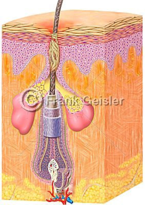 Zu den Hautanhangsgebilden gehören Strukturen der Haut wie Haare, Fingernägel und Hautdrüsen, die aus der Oberhaut sowie